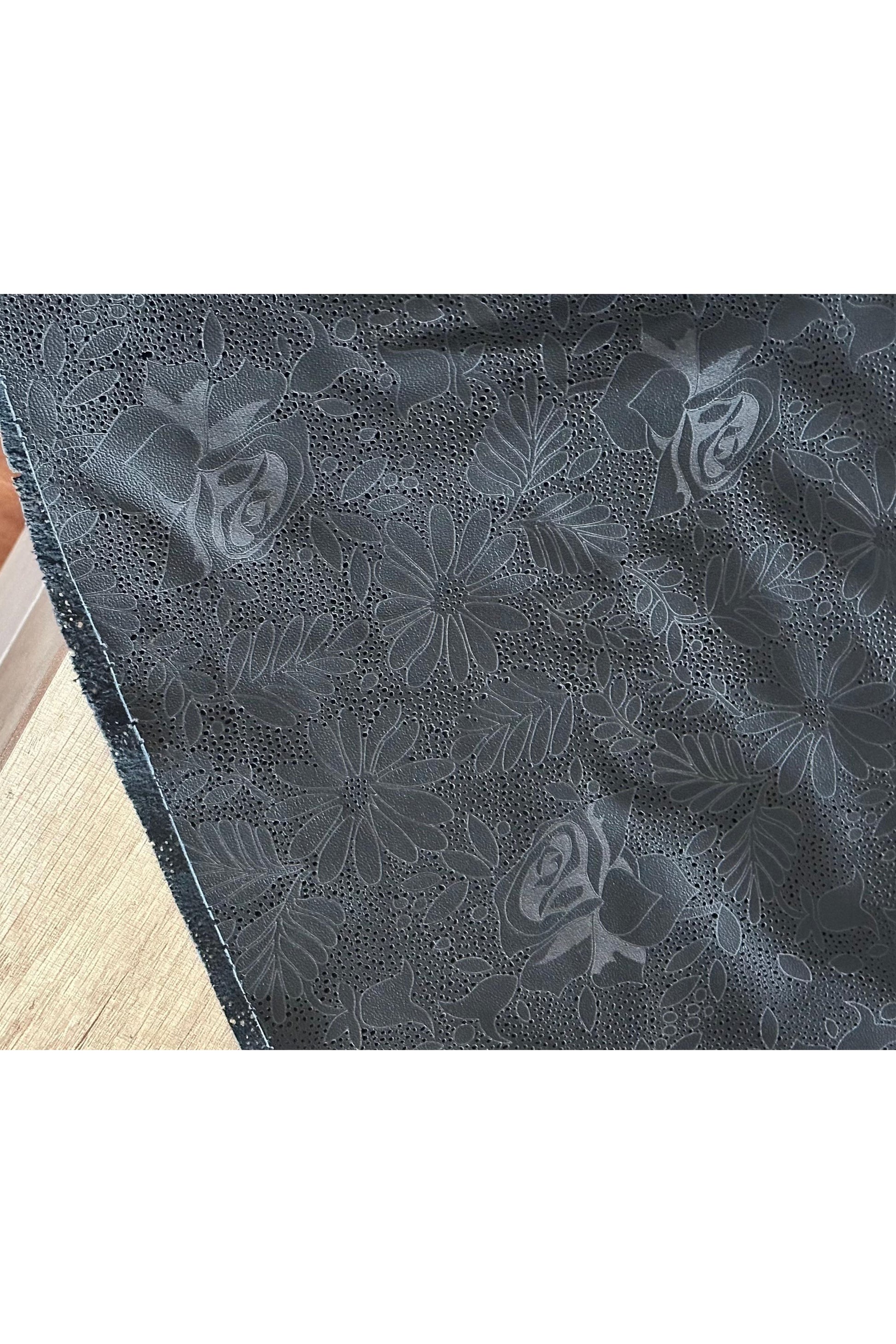T-shirt confeccionada en cuero con patrón floral diseñado con láser de alta calidad.
