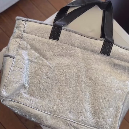 La tote más cómoda y duradera en cuero, para guardar tu laptop. Con bolsilos laterales.